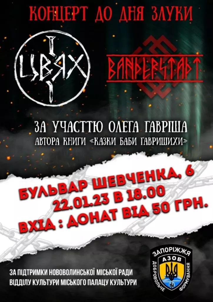 22-го січня у приміщенні міського палацу культури у Нововолинську відбудуться два благодійні концерти. Свою творчість містянам подарує музичний гурт «Бандерштадт» – військові добровольчого формування «Азов» з міста Запоріжжя.