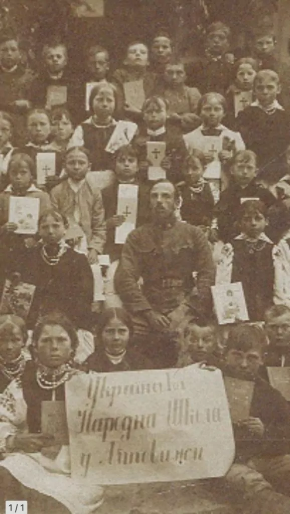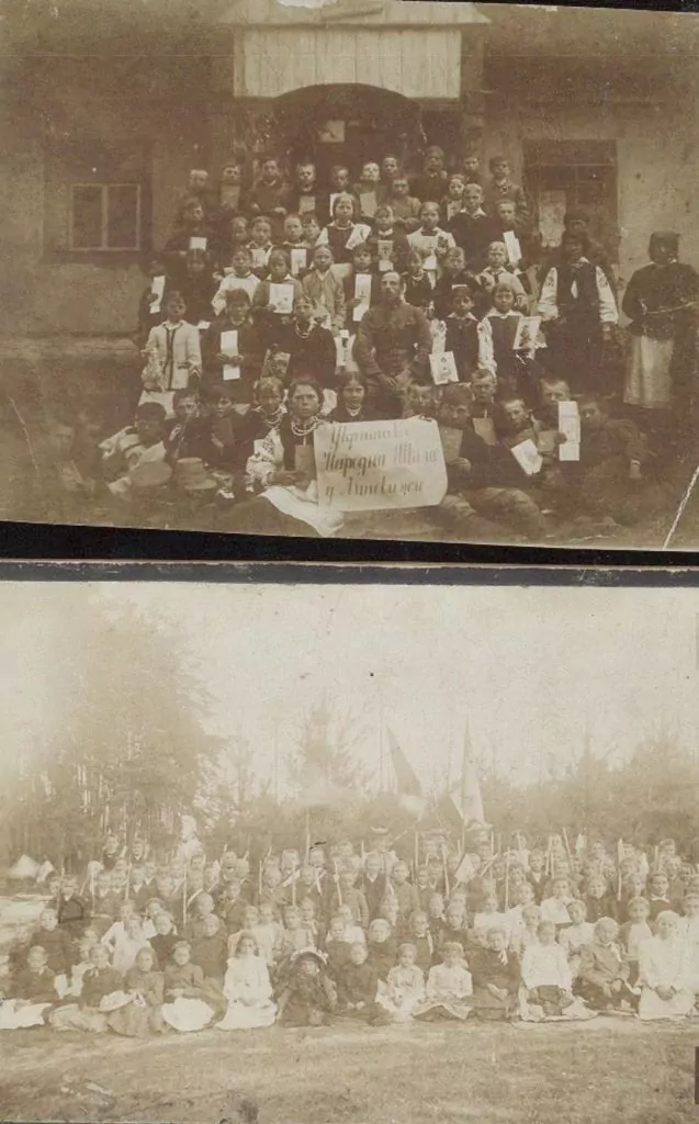 На фото зображенні другокласники та першокласниці, які навчались в українській народній школі. Дослідник додає, що світлина, яка розташована нижче, ймовірно теж з околиць громади.