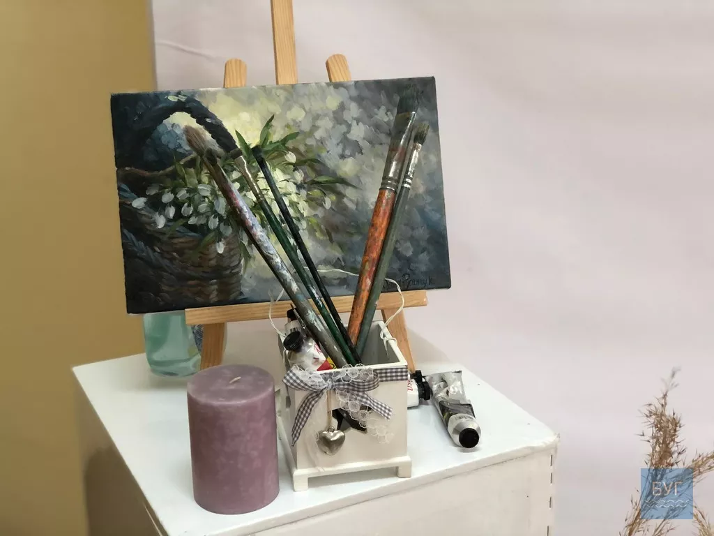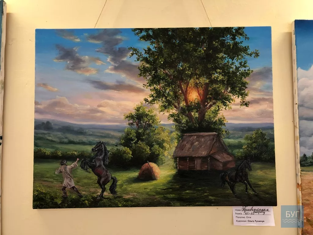 Для 27-річної Ольги це перша виставка, писати картини почала у 2018-му році, хоча професійно художньому ремеслу вона не навчалася. Та і в сім’ї ніхто не був художником.