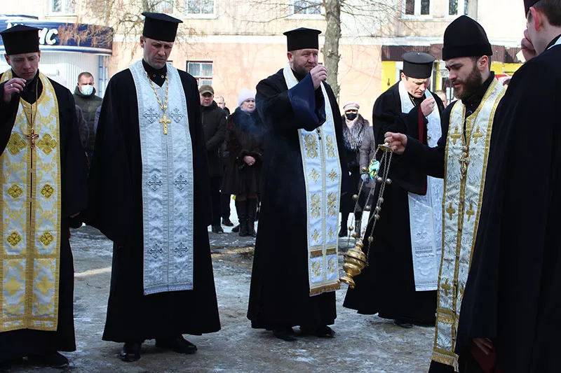 Біля фотостели Небесної Сотні благочинний Нововолинського благочиння, настоятель Свято-Духівського собору, митрофорний протоієрей, Степан Фульмес разом зі священниками відслужили панахиду за загиблими на Майдані.