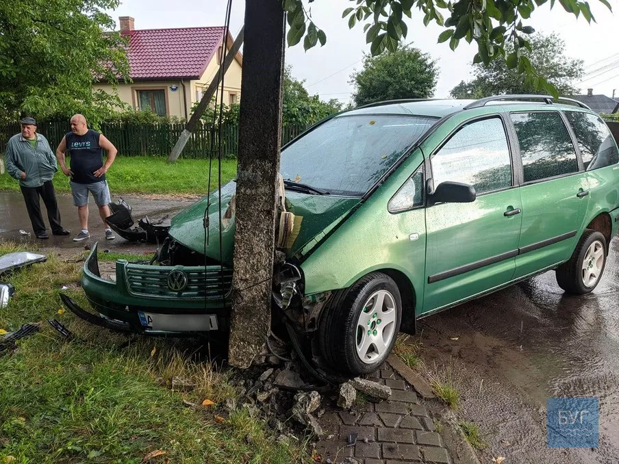Зіткнулися два автомобілі Opel Zafira та Volkswagen Sharan. Від удару останній в’їхав у опору лінії електропередач.