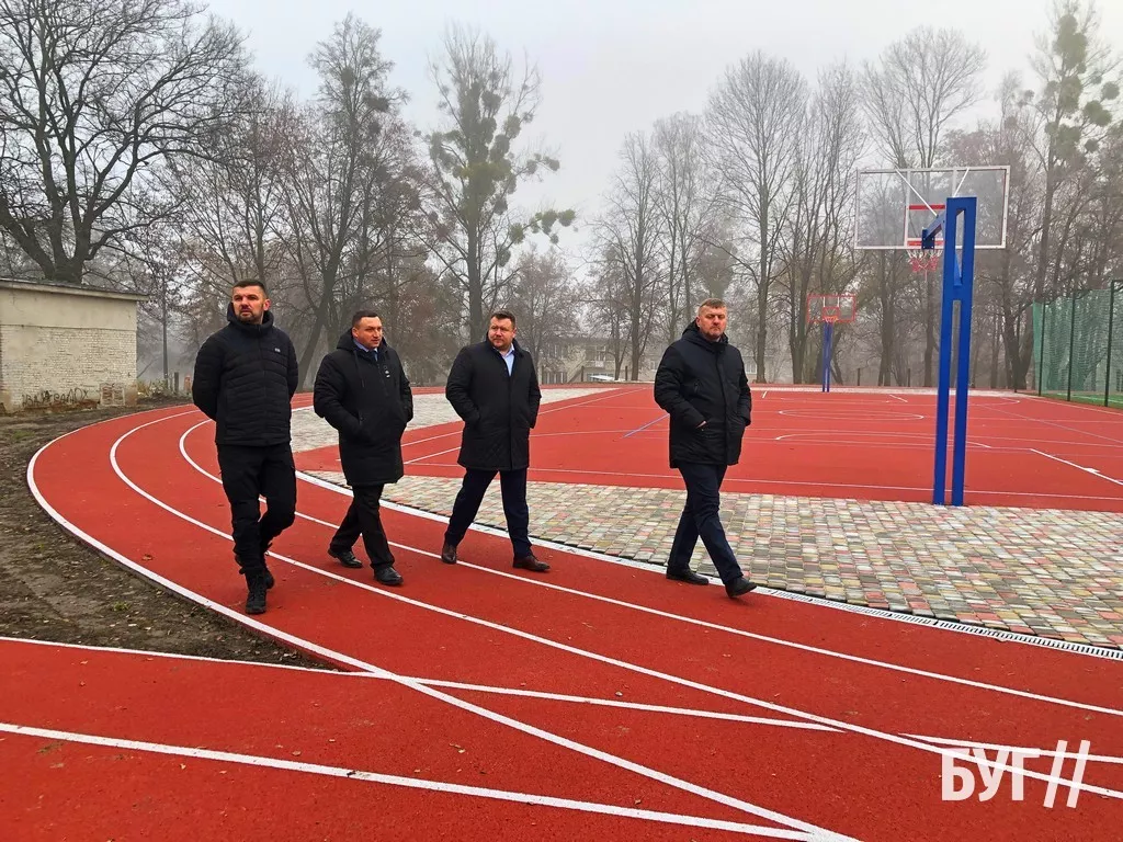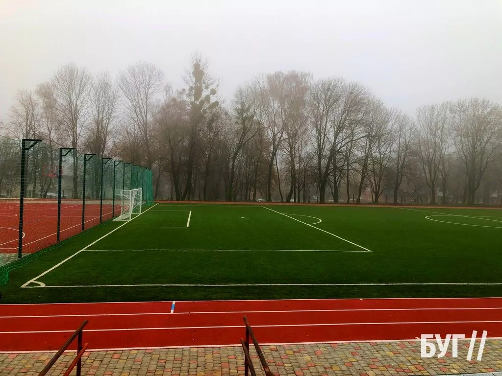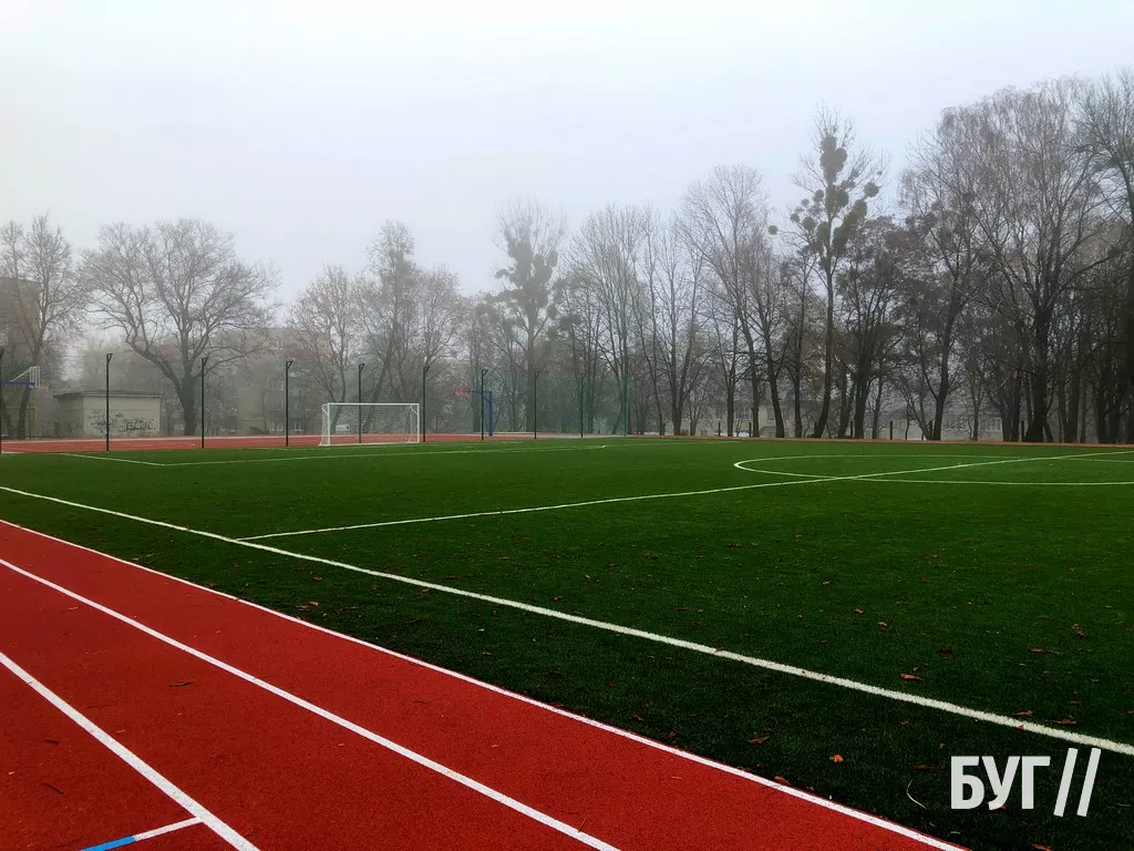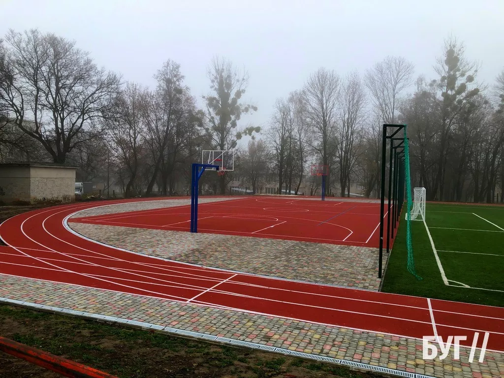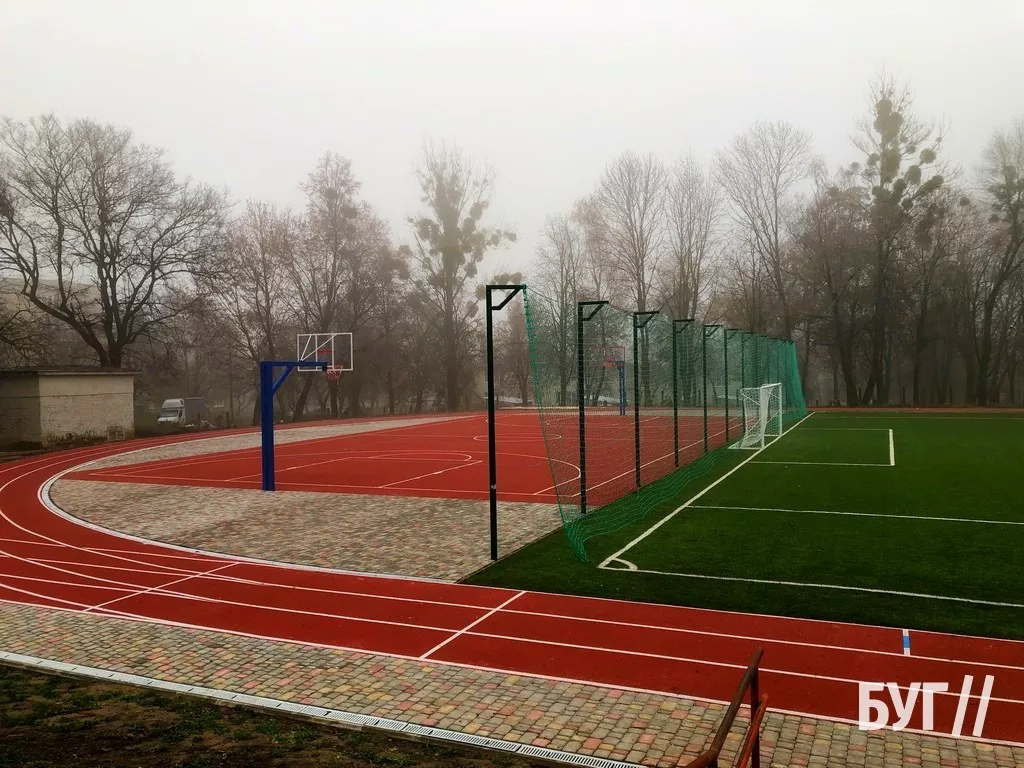 Наразі вже виконано всі роботи з облаштування футбольного поля, баскетбольного майданчика та бігових доріжок. Залишилось встановити паркан, тенісні столи та глядацькі трибуни.