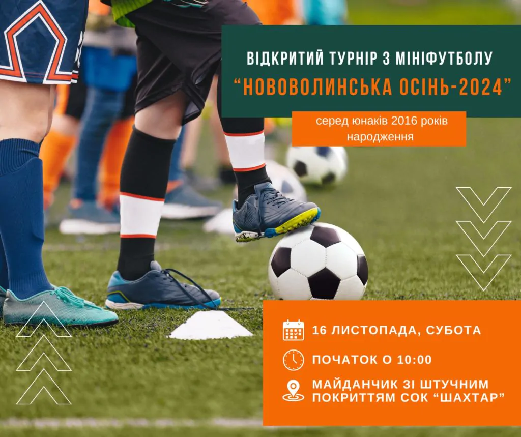 16-го листопада на майданчику зі штучним покриттям спортивно-оздоровчого комплексу «Шахтар» проходитиме відкритий турнір з мініфутболу «Нововолинська осінь-2024».
