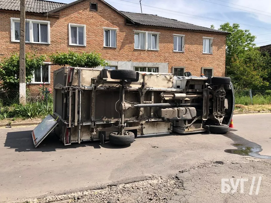 Вантажівка не надала перевагу в русі легковому авто і внаслідок зіткнення перевернулася. Про це розповіли на місці журналістам БУГу правоохоронці.