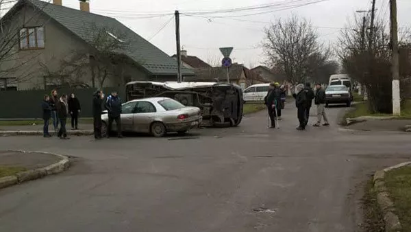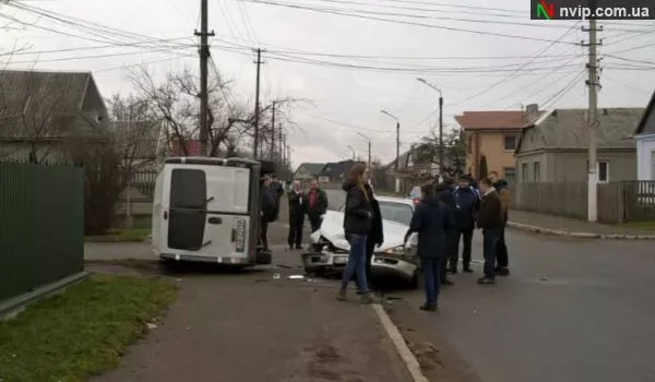Так, у районі Центрального ринку на перехресті вулиць Миру і Сковороди не розминулись мікроавтобус та легковик. Від удару бус із пасажирами перекинувся на бік.