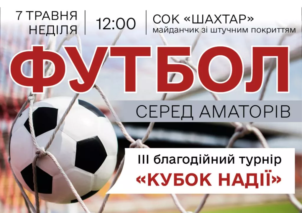 7-го травня о 12:00 на майданчику зі штучним покриттям СОКу «Шахтар» у Нововолинську відбудеться ІІІ благодійний турнір з міні-футболу «Кубок Надії».
