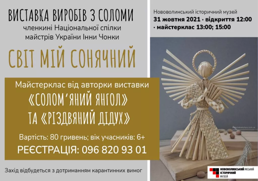Після виставки майстриня проводитиме майстеркласи о 13:00 “Солом’яний янгол” та о 15:00 “Різдвяний дідух”.