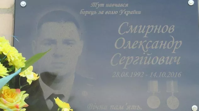 Пам’ятний знак загиблому Олександру Смирнову встановили 22-го травня на фасаді Нововолинської загальноосвітньої школи №4, в якій він навчався.