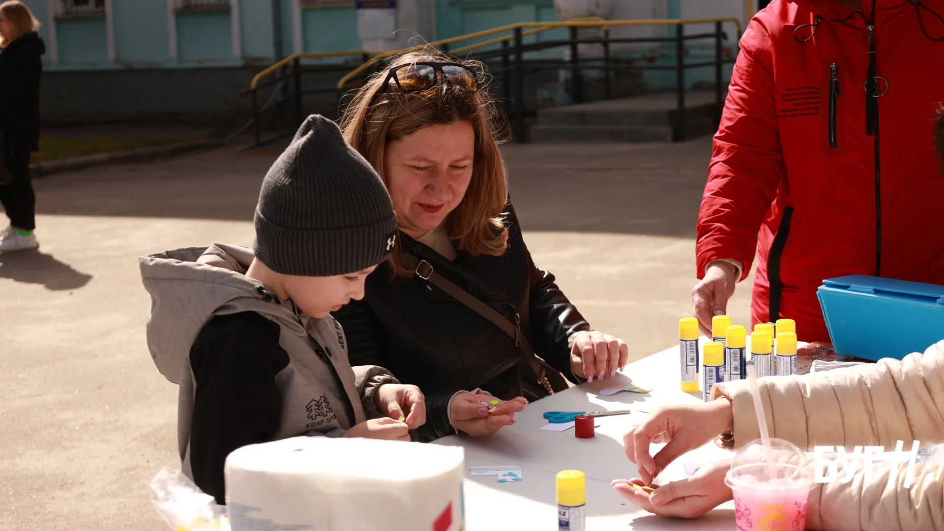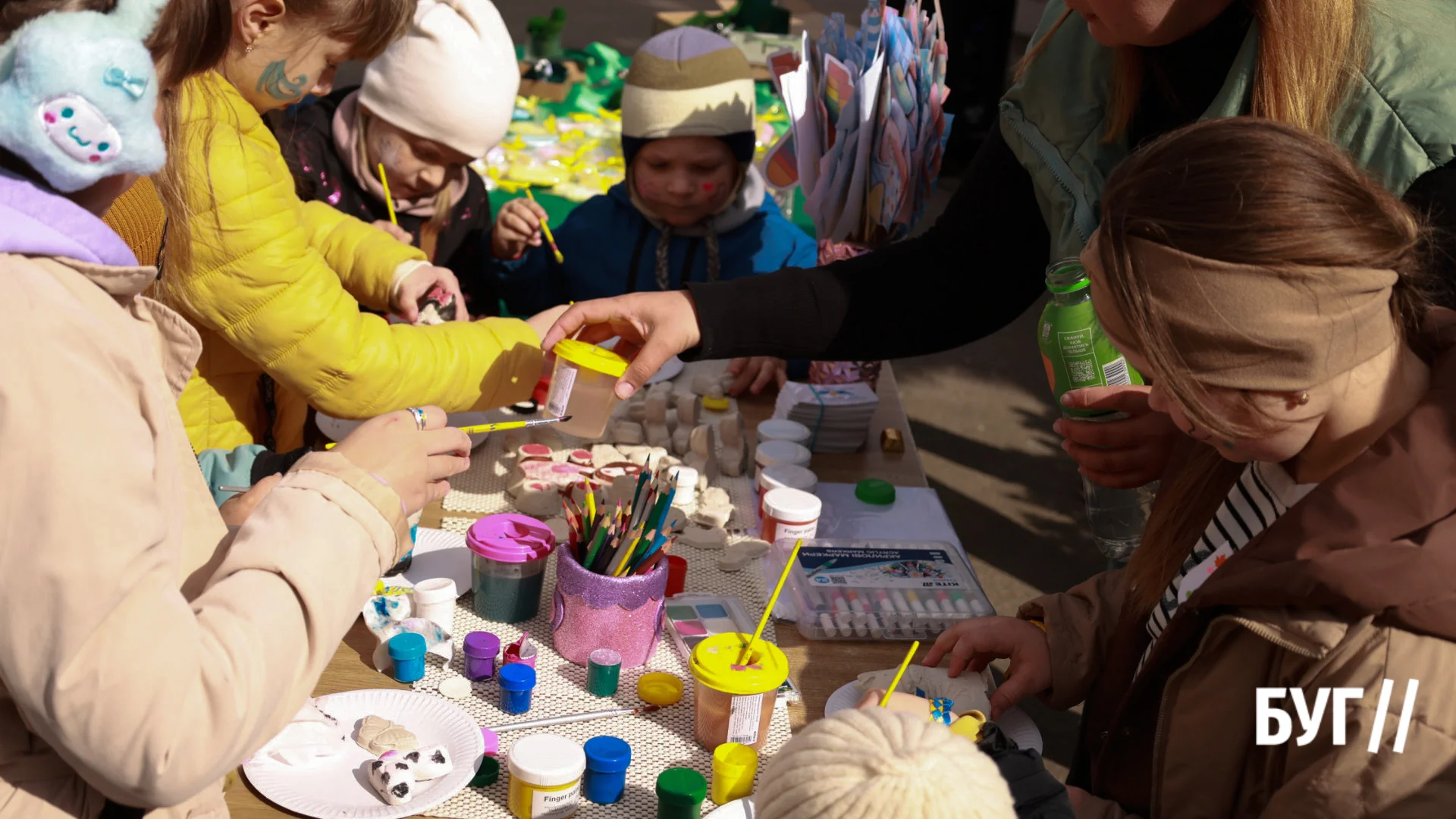 Під час події діяли різні локації. Аквагрим, розмальовування гіпсових фігурок, а також майстер-клас по техніці зняття стресу для батьків від Благодійного фонду «Крила майбутнього НВ»