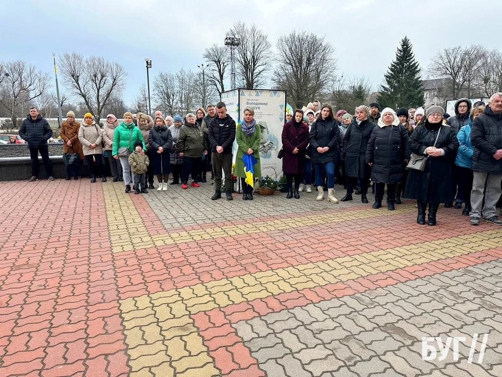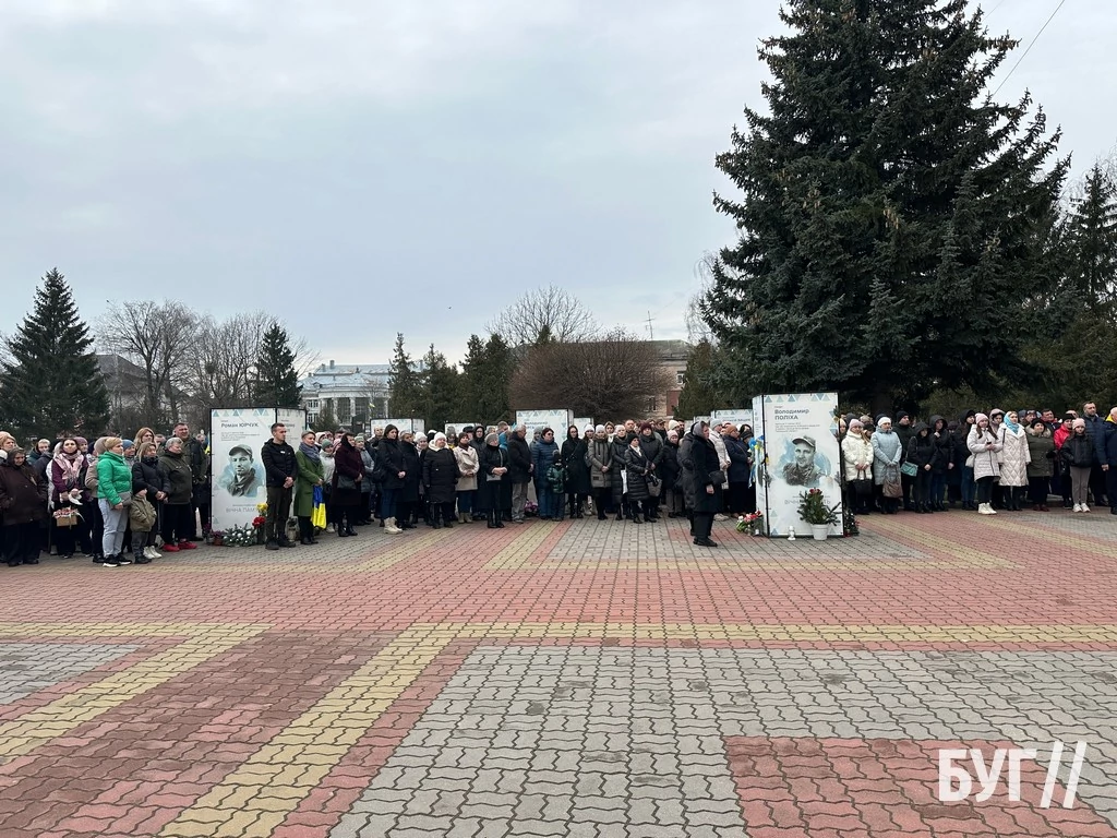 На площі В`ячеслава Чорновола біля портретів Захисників зібрались нововолинці, рідні загиблих військових та представники влади, також долучились гості з німецького міста Фронгаузен Андреас Кремер та Даріуш Гжелінський.