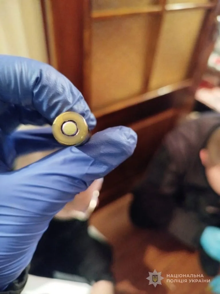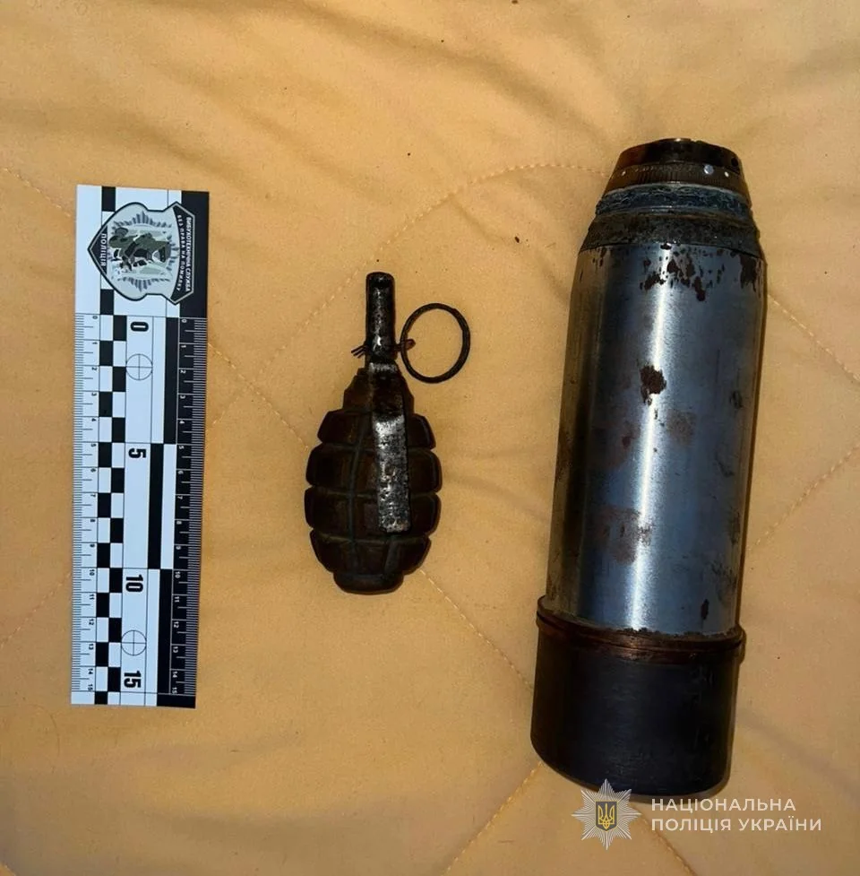 8-о січня за місцем проживання в фігуранта провели обшук, під час якого вилучили рушницю, патрони, гранату, банківські картки та інші речові докази.