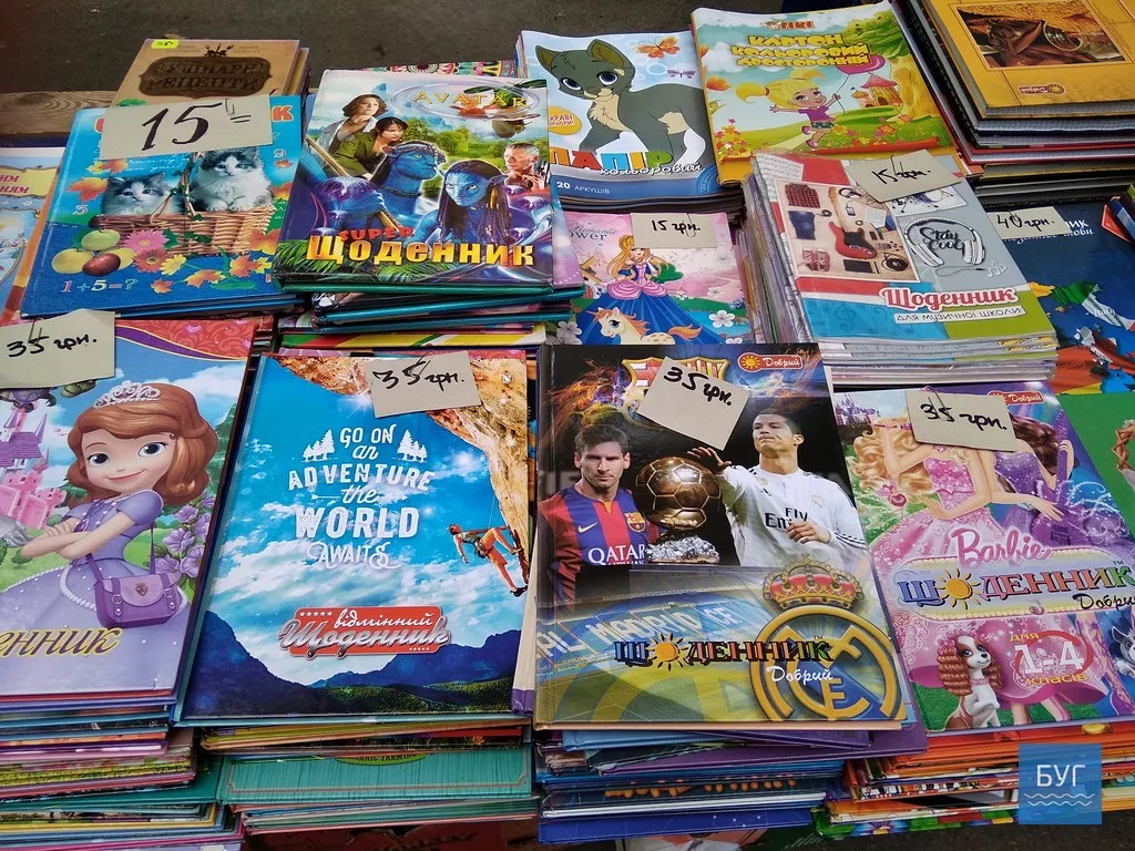 Ціни на щоденники різні. Можна купити тоненький, однотонний за 10-15 гривень, а можна з м’якою, яскравою обкладинкою за 80-100. Звичайні, тверді, з дитячими малюнками коштують 35-40.