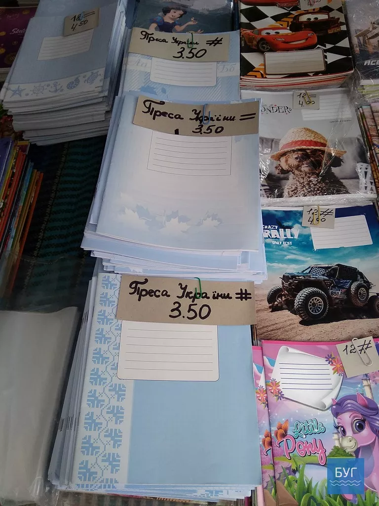 За словами продавчинь, для молодших класів найбільше беруть прості, тоненькі оптом, одразу від 50-ти штук, а для старших переважають на 48 аркушів, з візерунками, приблизно по 10 гривень.
