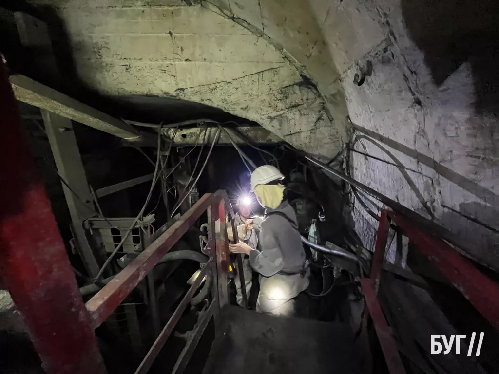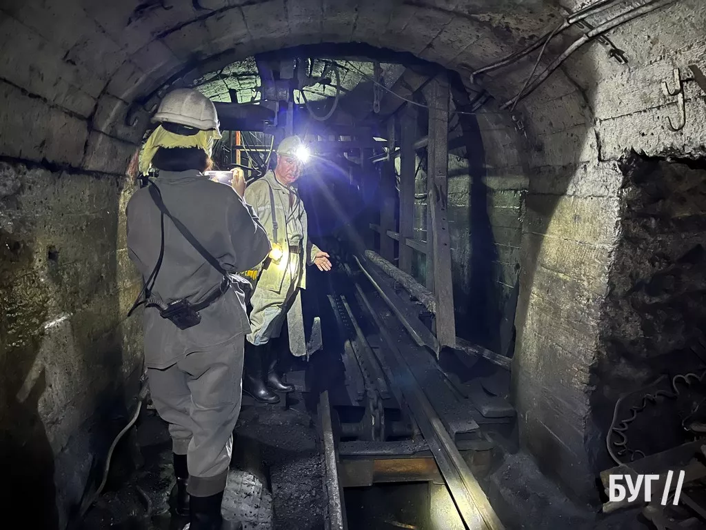 Щоб побачити та показати реальні, надважкі умови праці гірників, журналісти БУГу спустились у копальню на глибину близько 400 метрів під землею. Перед цим, журналістам провели інструктаж з техніки безпеки, видали робу, гумові чоботи (40 розміру), каску з “коногонкою” та саморятівники (вагою приблизно 3,5 кг). Екскурсію по підземці проводив заступник директора з охорони праці Ігор Микулич, який має понад 20 років стажу.