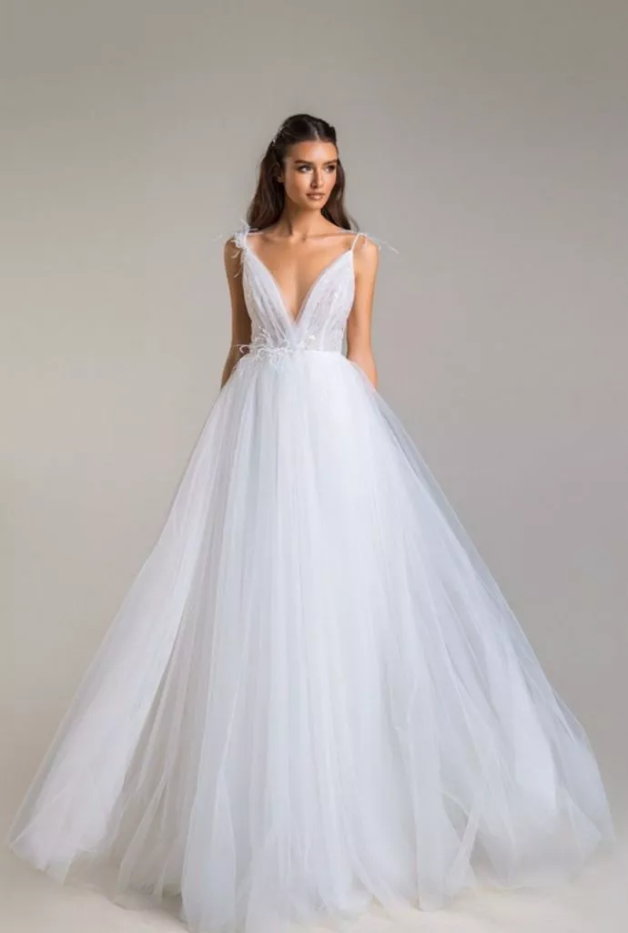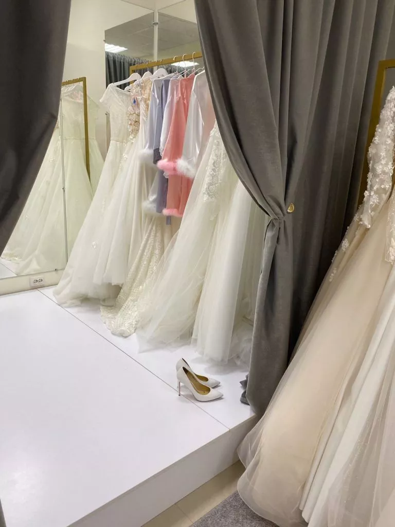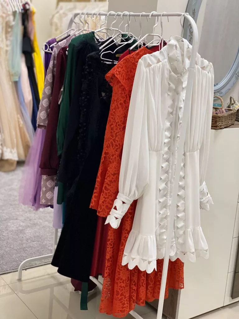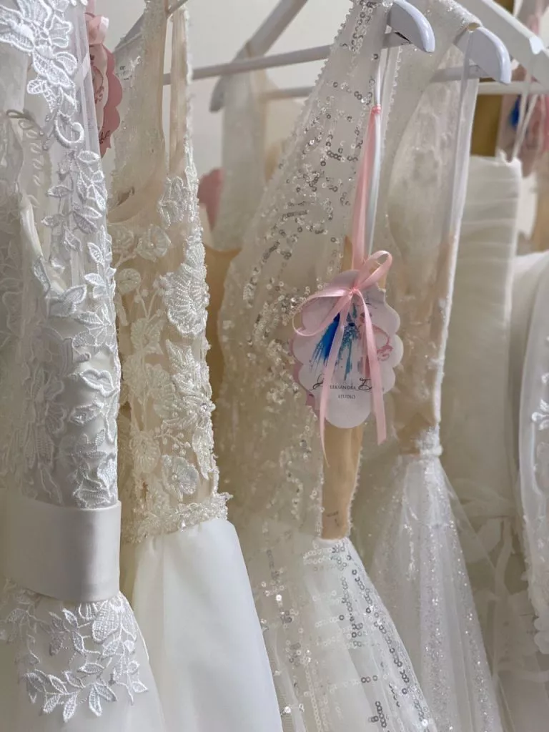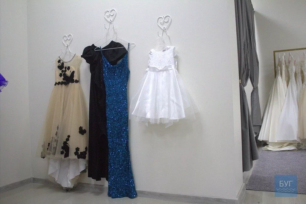 Магазин пропонує сукні від українських дизайнерів, таких як Elena Morar Та Elena Vasilkova.