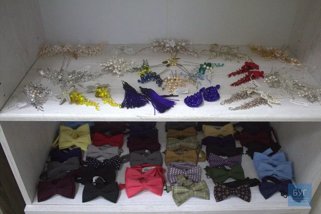 Окрім плать в магазині наявні аксесуари – віночки, діадеми, сережки, резинки для маленьких красунь та метелики для хлопчиків та чоловіків.