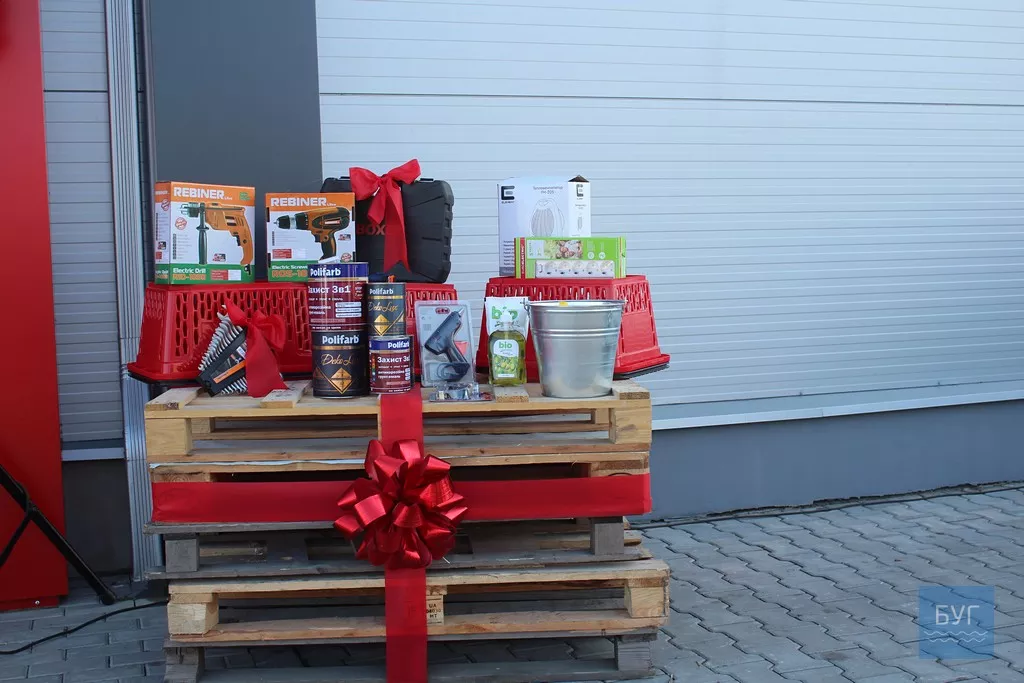 Для покупців та гостей, які завітали в новий магазин, влаштували розіграш призів. Подарунки – з асортименту товарів (інструменти, фарби, побутова хімія тощо). Кожен покупець мав змогу кинути чек у спеціальну скриньку, взяти участь в розважальній програмі та виграти приз.