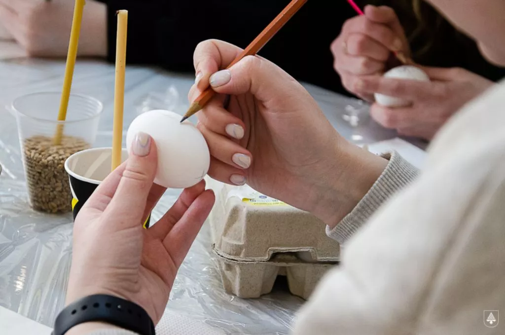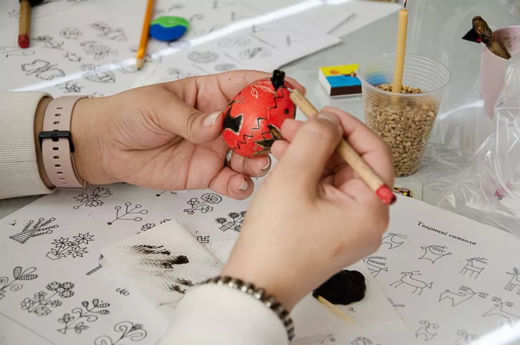 Кожен учасник майстер-класу зміг самостійно виконати усі етапи створення писанки – від вибору орнаменту та кольорової гами – до готового результату. Заняття зацікавило не лише дорослих, діти також з цікавістю спостерігали та розписували яйця.