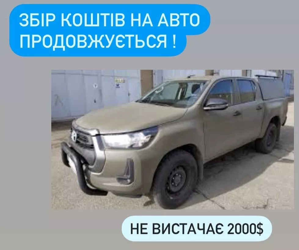 Для купівлі позашляховика не вистачає ще 2000 доларів, повідомляють у фейсбуці об’єднання.