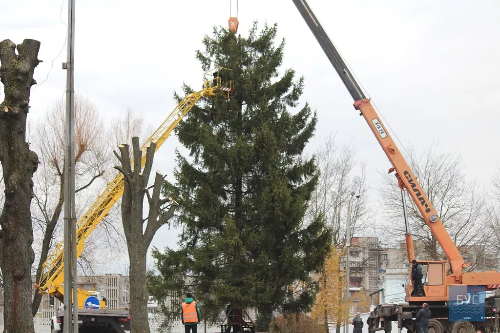 Новорічна красуня висотою 12-ть метрів. Подарували її місту представники бізнесу.