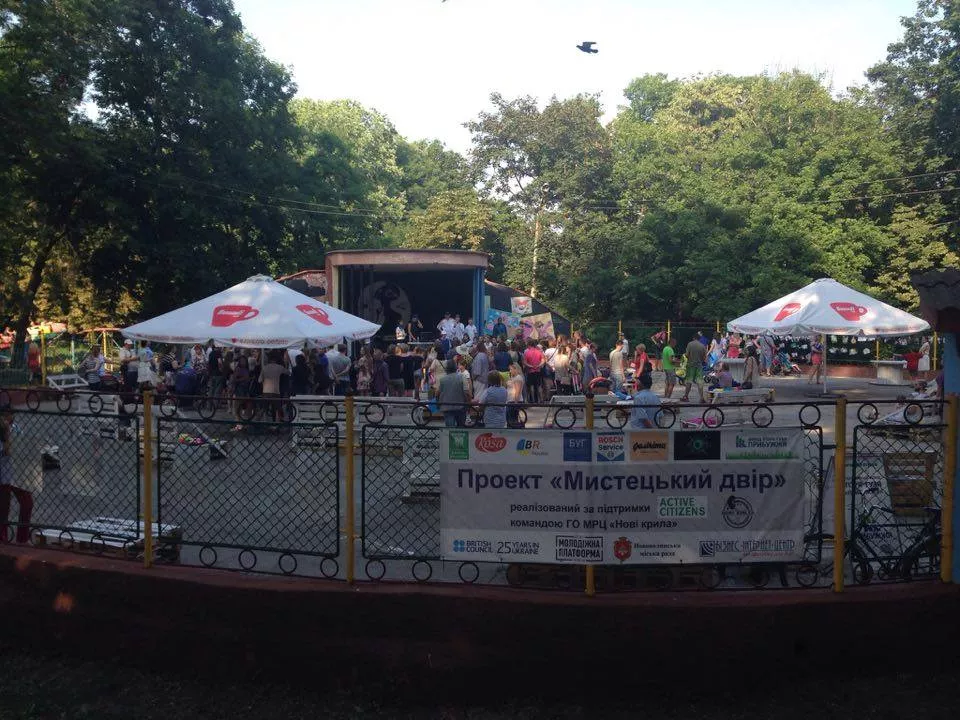 Проект «Мистецький двір» реалізований силами МРЦ за сприяння Британської Ради в Україні, Фонду Ігоря Гузя «Прибужжя», Нововолинської міської ради та небайдужих підприємців. Нами було перетворено старий занедбаний танцмайданчик в парку на сучасний відкритий простір для молоді, де всі можуть проводити свої заходи, дивитися фільми під відкритим небом, огранізовувати музичні виступи. На відкритті на нововолинців чекали майстер класи з танців, фотовиставка місцевих фотографів, фотовиставка «Історія Українського війська» та перегляд кінофільму під відкритим небом. Над проектом працювало понад 30 учасників і троє волонтерів Корпусу Миру США.