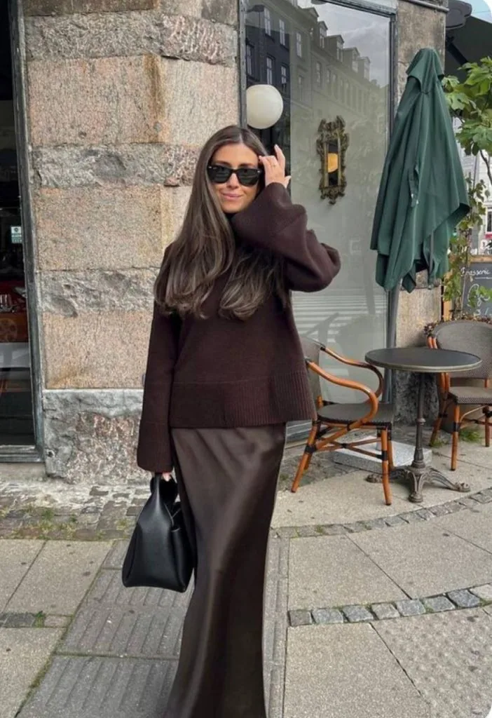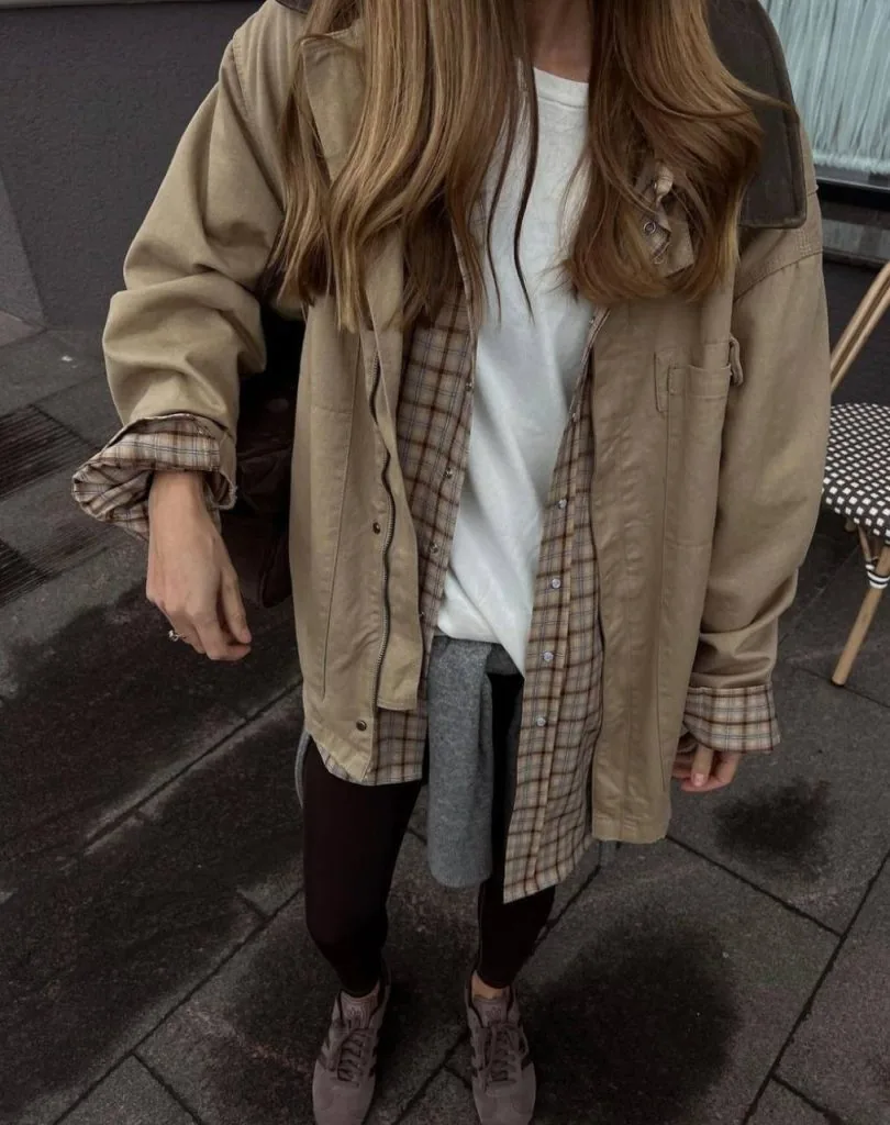 Найулюбленіший прийом стилістів — багатошаровість. Вона не лише зігріває, а й робить образ цікавішим. Наприклад: футболка + светр + пальто + светр на плечах чи лонгслів + сорочка + жакет + пальто. Обирай базові кольори (сірий, беж, чорний, хакі, шоколадний, синій, блакитний) — так речі легко поєднуються.