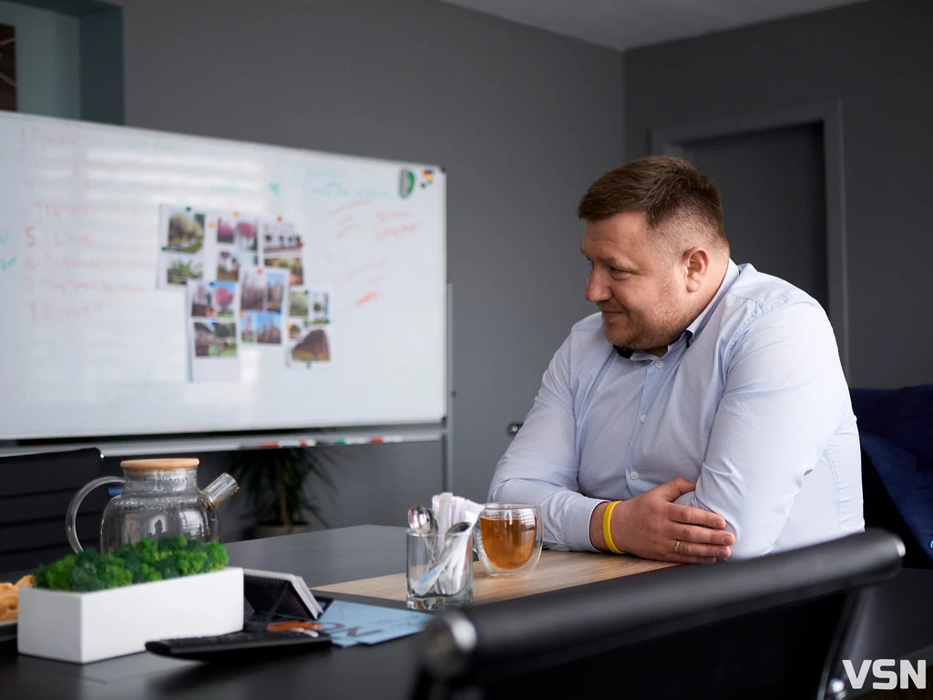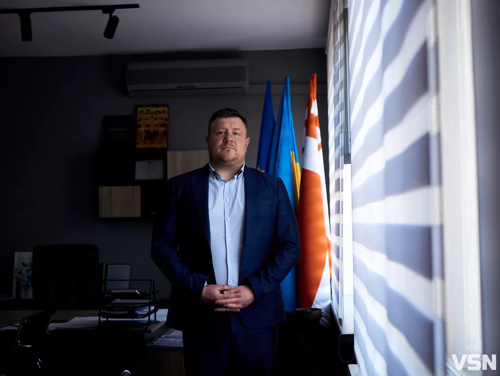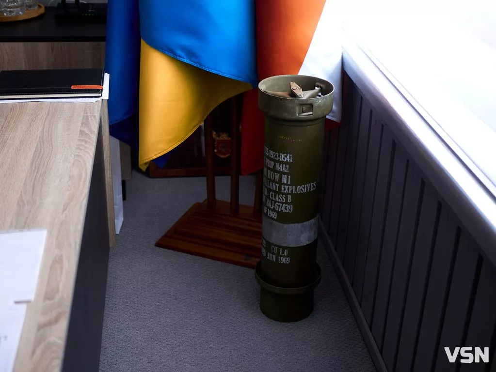 … «Насправді цей кабінет зараз трохи захаращений. Не скажу, що я прихильник мінімалізму, але я люблю більше простору.Тут у нас п’ята частина різних подяк, які громада отримувала за півтора роки. Наприклад, ми вдруге виграли кубок з футболу, і це унікальна історія. З 1974 року нововолинський «Шахтар» жодного разу не вигравав кубок області. У той рік, коли я став міським головою, вони виграли. Це був 2020-й. Пригадую, якраз став міським головою і вручав їм медаль.