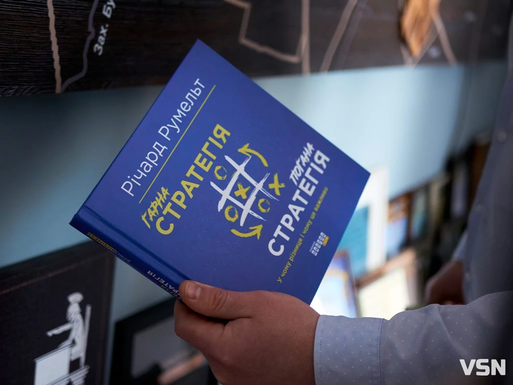 … «Ось книжка про те, як вибудувати таку стратегію розвитку міста, щоб вона була ефективна. Почитав половину і кинув, бо почалася війна. Крім того, вона в академічному стилі й трохи читається важко (книгу Річарда Румельта «Гарна стратегія — погана стратегія» повертає на місце).