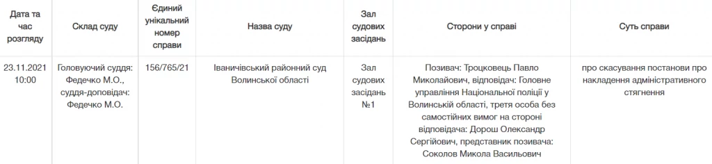 Перший позов сторона позивача подала з порушенням вимог законодавства. Другий підготували вже правильно. Останнє засідання у справі відбулося в Іваничах 23-го листопада.