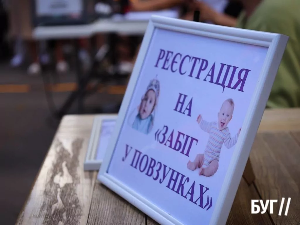 «Забіг у повзунках» – це спринт на 4-метрову дистанцію, яку дитина, віком від 8 місяців до 1,2 року, повинна подолати поповзом. Забіги відбуватимуться одночасно на двох доріжках.