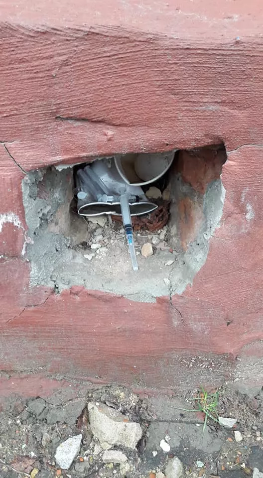 У соціальній мережі, житель Нововолинська Сергій Козачук, показав як самостійно закрив отвір в стіні, де збиралися використані шприци.