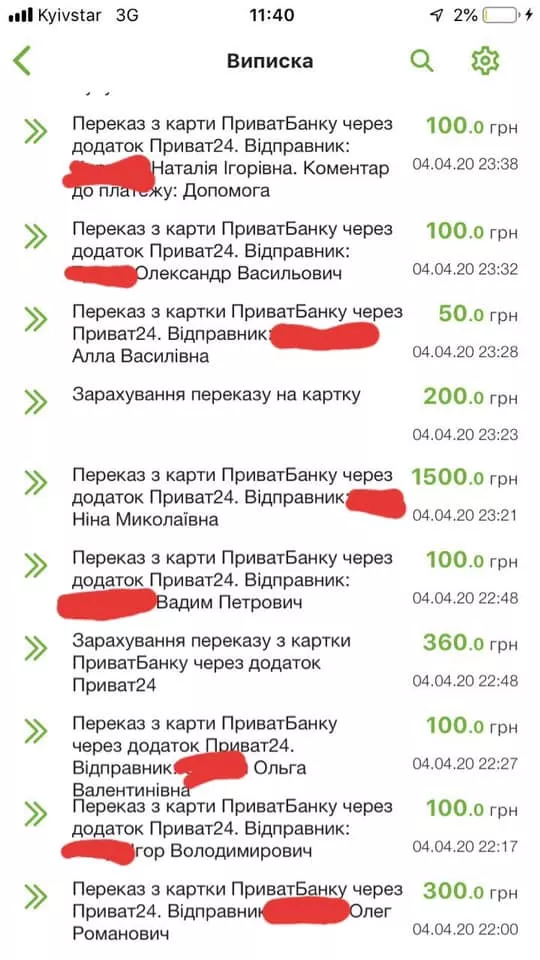 До посту Алла Шелестовська додала фото-звіт з банківської картки.