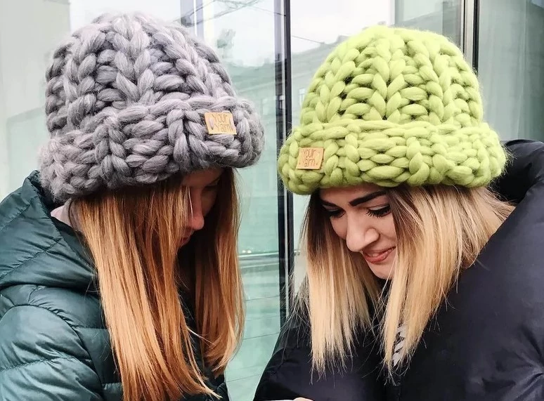Взимку модниці найчастіше віддають перевагу пуховикам, до яких ідеально підходять в’язані шапки.