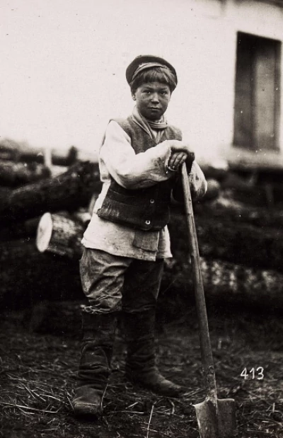 «Більшість світлин з дітьми були зроблені в холодний період року. Як бачимо не всі діти добре одягнуті. Також варто звернути увагу на спрацьовані руки дітей, видно, що малечу привчали до праці з малих років», – коментує дослідниця Тетяна Яцечко-Блаженко.