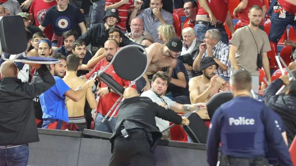 Під час баскетбольного матчу Ліги чемпіонів між Шарлеруа та Хапоель Тель-Авів побились фанати ізраїльського та бельгійського клубів. Сутичка розпочалась після того, як гравець Хапоеля випадково під час гри налетів на бельгійського вболівальника, який відштовхнув від себе баскетболіста, повідомляє НВ з посиланням ...