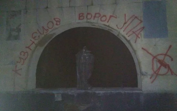 Учасники організації С14 у ніч на 30 липня розмалювали могилу радянського розвідника Миколи Кузнєцова. Про це повідомив координатор організації С14 Сергій Мазур на своїй сторінці у  Facebook і опублікував фотографії з місця подій. Як видно на знімках, висічені на надгробку написи закреслені і забризкані ...