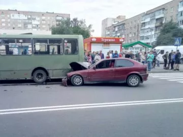 У Луцьку на вулиці Конякіна водій BMW обминав легковик Chery Amulet, який виїхав на зустрічну смугу, та влетів у маршрутку. Аварія трапилась близько 20:50 вчора, 22 травня, - повідомляє інтернет-видання «Волинь24». За словами свідків, на повороті біля супермаркету «Салют» автомобіль Chery Amulet виїхав на зустрічну ...