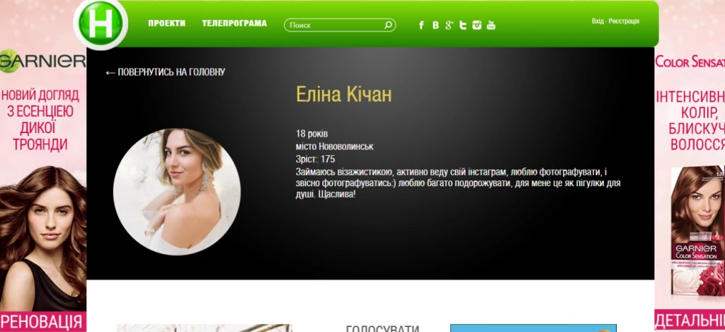 Дівчина з Нововолиснька Еліна Кічан бере участь в онлайн кастингу проекту «ТОП-modeль по-українськи». В результаті цього кастингу, обрана сотня учасниць пройде до наступного етапу відбору для подальшої участі у телевізійному проекті «ТОП-modeль по-українськи», – йдеться на сайті Нового телеканалу. Еліна ...