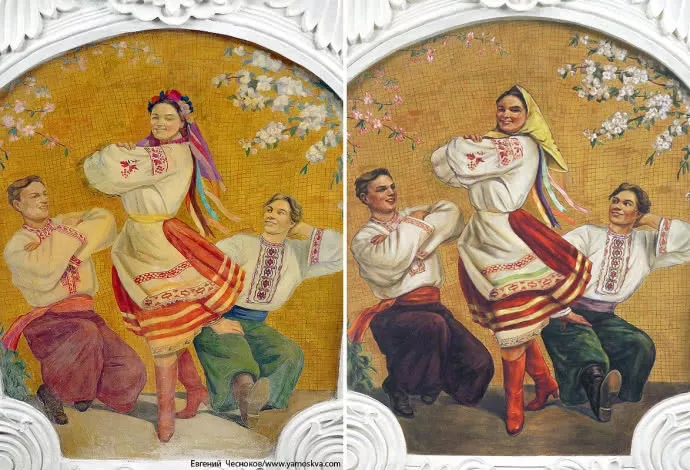 Під час реставрації станції "Київської" московського метрополітену на одній зі стін змінили зображення на фресці - український вінок на голові дівчини замінили на хустинку. Про це повідомляє прес-служба метро у відповідь на питання блогера Рустема Адагамова у Twitter. Там стверджують, що повернули картині ...