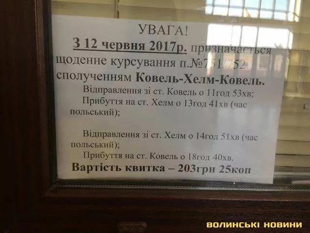 Попри те, що Укрзалізниця анонсувала старт роботи маршруту від Ковеля до польського міста Холм вже на 12 червня, квитків в касах досі немає. Натомість, на вокзалі вже розмістили оголошення з точною вартістю квитка та рекламою нового маршруту. Як повідомив 3 червня в Департаменті інформаційної політики та зв'язків із ...