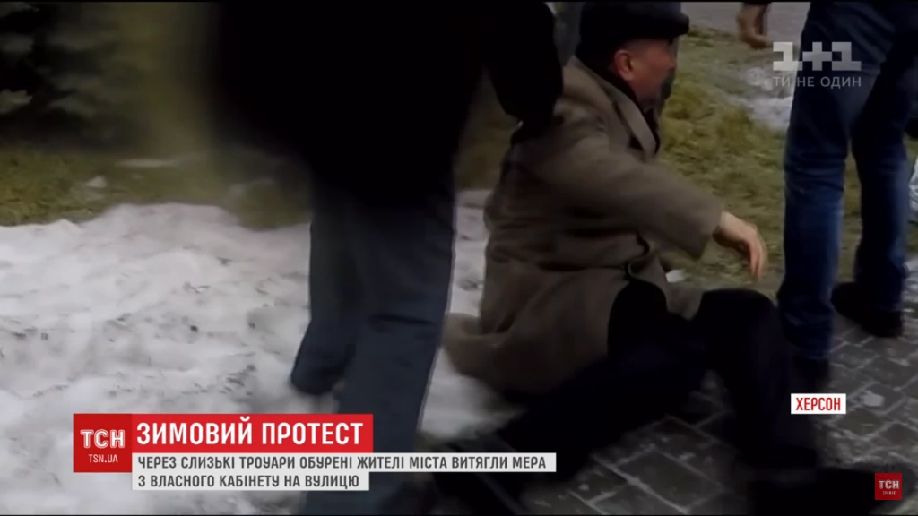 Херсонці зайшли до приміщення мерії, витягнули мера на вулицю і показали Володимиру Миколаєнку наочно, що місто потерпає від ожеледі, а тротуари не посипані. Суперечка переросла в штовханину, міський голова послизнувся і впав. А через те, що активіст сіпав його за руку, у мера порвався рукав пальта. Тепер чоловікам за ...
