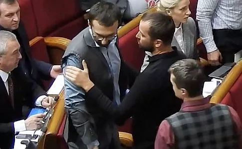 Бійка сталася в сесійній залі. Конфлікт стався під час розгляду законопроекту про Конституційний суд. Депутати спочатку сварилися, а опісля Мельничук вдарив Лещенка по обличчю. У залі зчинилася бійка, у якій, як стверджують нардепи, постраждала Світлана Заліщук, а самому Лещенку порвали піджак, - пише Корреспондент. ...