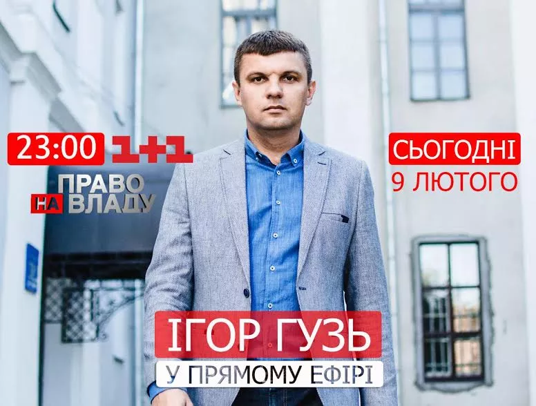 Народний депутат України Ігор Гузь 9-го лютого о 23:00 год буде у прямому ефірі програми "Право на владу" на каналі 1+1. Поговоримо про блокаду окупованих територій Донбасу та події в Авдіївці - написав нардеп у себе на фейсбуці. Дивитися онлайн можна на сайті каналу 1+1 ...