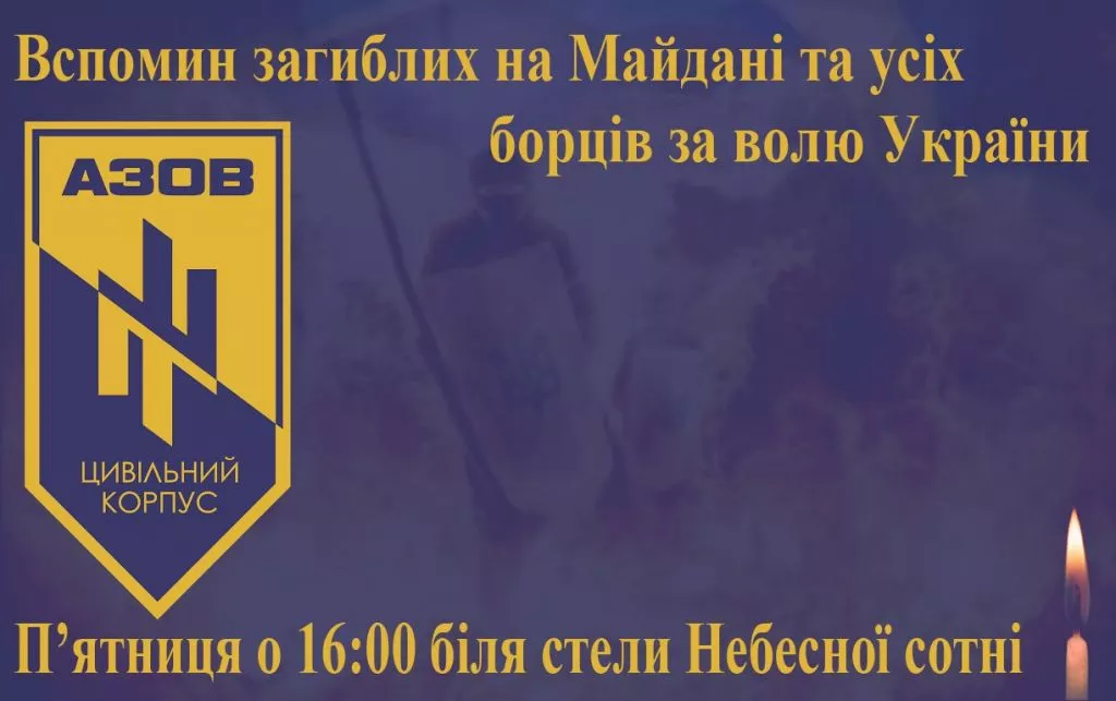 У Нововолинську вшанують героїв Небесної сотні. Цивільний Корпус «АЗОВ» Нововолинськ спільно з організацією «Україна+Польща» в п'ятницю о 16:00 біля стели Небесної сотні вшанують пам'ять загиблих на Майдані та усіх борців за волю України,- повідомляють у групі Цивільного Корпус "Азов" | Нововолинськ Прийди,запали ...