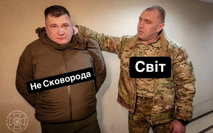 На світлині Малюк міцно тримає за плече іншого чоловіка – мовляв, “не переживай, все буде добре… або ні”. Цікаво, що ім’я затриманого СБУ не розголошує.