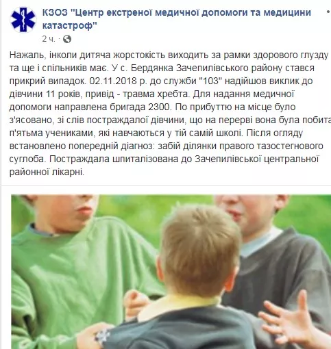 У п’ятницю, 2 листопада, під Харковом п’ятеро школярів побили 11-річну дівчинку, в результаті чого вона отримала травму хребта.