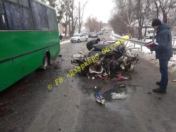 “Автомобіль ЗАЗ виїхав на зустрічну смугу, де зіткнувся з маршруткою рейсу “Обухів-Матяшівка”, – уточнили правоохоронці.