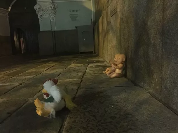Погрожували розбити камеру й журналісту, який знімав іграшки біля входу в Києво-Печерську лавру. Спочатку один зі священнослужителів Лаври відкинув поставлені іграшки вбік, потім вимагав, щоб журналіст видалив зроблені фото.