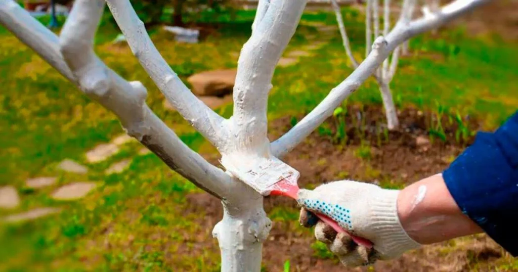 Такий розчин не лише відбиває сонце, а й створює бар’єр для комах, які намагаються піднятися з землі в крону.