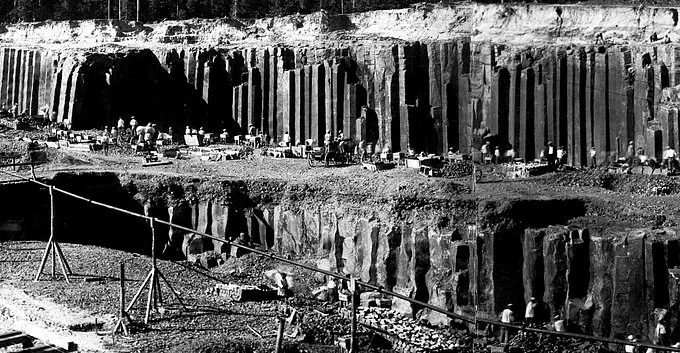 Колишнє найбільше на Волині родовище базальту у Яновій Долині. Сьогодні тут і надалі видобувають базальт, але більшість цих стовпів вже знаходиться на дні затопленого кар’єру. Фото: Роман ПАВЛЮК